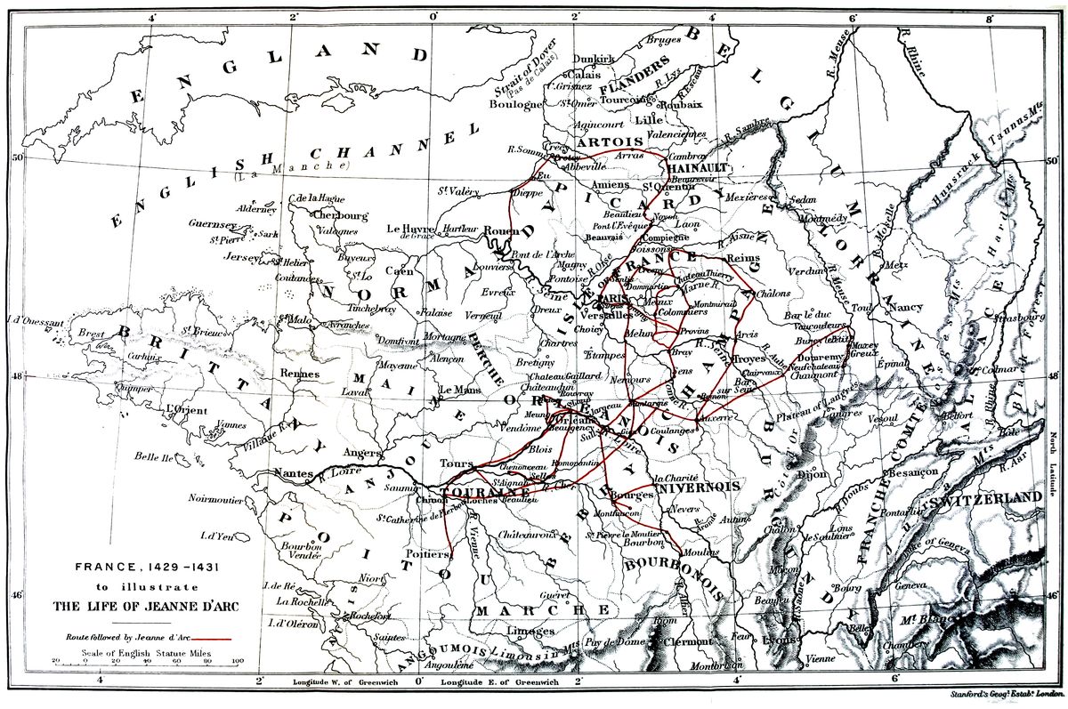 It is noteworthy that Jeanne’s mission, as now defined and traced by French scholars, was the double one of rescuing beleaguered Orleans and crowning the Dauphin at Rheims.
