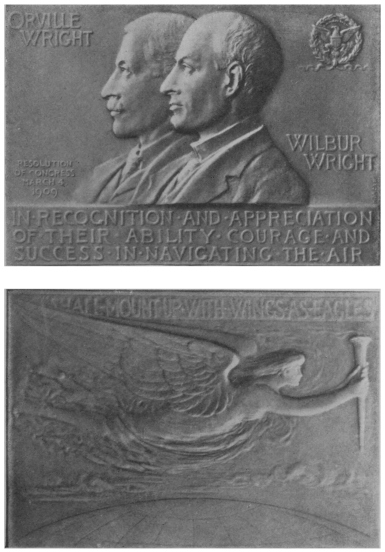 This medal was awarded Orville and Wilbur Wright by resolution of Congress, March 4, 1909. Bronze replica in possession of the writer.