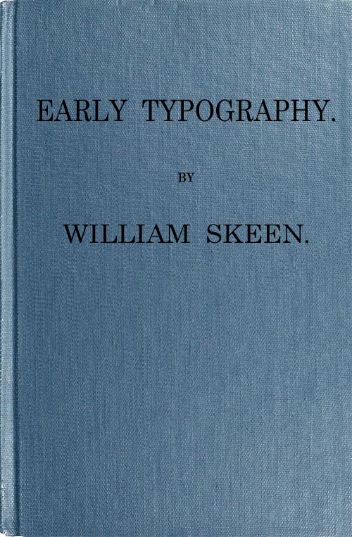 [3] For assistance in this matter, I am much indebted to my father, Mr. Robert Skeen, under whose able teachings I was thoroughly instructed in, and made a master of my craft—the Art of Printing. I have also to acknowledge, with thanks, the material aid received from Mr. H. W. Caslon, the eminent Type-founder, as well as from my publishers, Messrs. Trübner and Co., of Paternoster Row.