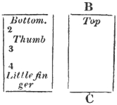 This trick is to be performed in much the same manner as the former, and, as in the first case, without hurt; if the reader will take the pains to practise this trick, he will be in no more danger of performing one than the other.
