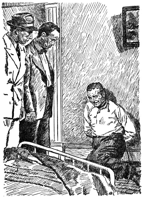 Dennings was in the room, with his back to them, a revolver in his hand. He was pointing it at two very frightened men, who cowered in a far corner near some dusty old portraits which hung on the wall. Vench started in surprise. One of the men was Paul Morro and the other was his companion.