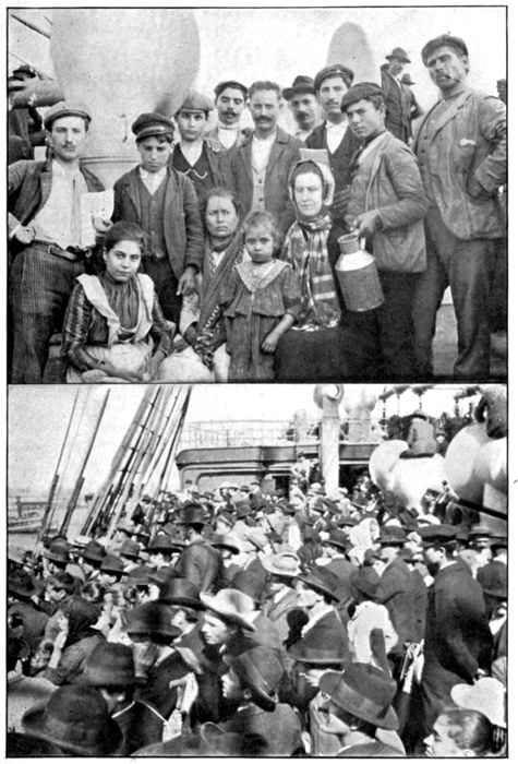 One day I was in the Grand Central station in New York, ready to take a train for New Haven, and as I came up to the gate I saw, passing through before me, a group of more than twenty newly arrived Italians, following the leadership of one short, black, thick-set 2prosperous-seeming man who spoke Italian to the left and broken English to the right. They were tagged for Boston and other New England towns, and, bearing their heavy burdens of luggage and bundles, with faces drawn with weariness, eyes dull with too much gazing at the wonders of a new land, with scarce a smile among them except on the faces of the unreasoning children, they were herded together, counted off as they passed through the gate and taken aboard the train, much as if they had been some sort of animals worth more than ordinary care, instead of rational human beings. Here they were in charge of the conductor, who grouped them in seats according to the towns to which they were destined.