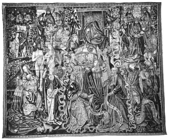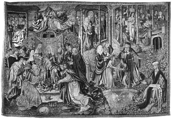 My chief concern in organizing this exhibition has been to make it exemplify, first, the history of tapestry, and, second, its æsthetic qualities as these have appeared during the different periods of its changing and varying development, which, like the art of painting, had its naïve, primitive beginnings, its glorious culmination, and its decline. Therefore, every piece has been selected both to represent a distinct and significant type in the chronology of the art and to illustrate the artistic merits of that type, and all the tapestries shown are of the highest worth in their particular category and many of them are among the supreme masterpieces of European art, considered from whatever point of view one may choose to regard them. Only too long have these noble products of the loom been relegated to a[6] secondary place in the history of European culture, which they did so much to celebrate. I sincerely trust that this exhibition, culled from seventeen collections in New York, San Francisco, and Paris, may successfully contribute something toward abolishing the hypnotic spell of the gold-framed oil-painting, that artistic fetish which too long has held the uncritical enthralled to the exclusion of other and ofttimes more authentic manifestations of the human spirit in art.