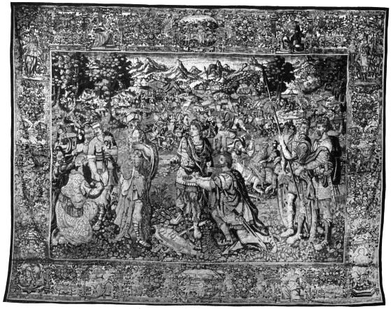 In its scope and general lines this exhibition follows closely the plan of our Exhibition of Paintings by Old Masters, and, as will at once be apparent from the subject-matter and treatment, covers the same period of European history. Although important exhibitions of European tapestries have been held at various times both here and abroad, it has remained for our museum to arrange the first complete historical survey of this art given in America. This collection presents in unbroken sequence the main currents influential in the development and decadence of the great art of tapestry-weaving in Europe, from the XIVth century down to and including the early XIXth century, as exhibited in the work of the foremost designers and weavers of the period, in examples that, for the most part, are brilliantly typical and always characteristic of their particular style.
