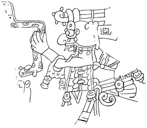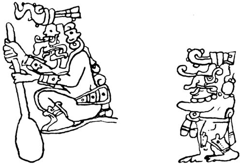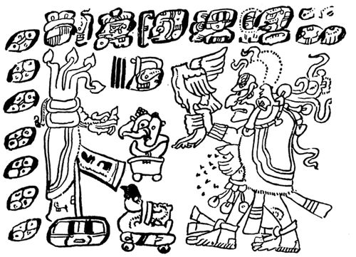 110. Bird’s wing in Maya is xik. Close in sound is xikal, queen (señora principal, Dicc. Motul). The first wing feather was also called “a knife” (la primera pluma de la ala del halcon se llama “cuchillo maestre,” “u cicil ulum.” Dicc. de San Francisco).