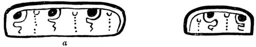 The frequency and prominence of these elementary numerals in nearly every relic of Mayan writing, whether on paper, stone, or pottery, constitute a striking feature of such remains, and forcibly suggest that by far the majority of them have one and the same purpose, that is, counting; and when we find with almost equal frequency the signs for days and months associated with these numerals, we become certain that in these records we have before us time-counts—some sort of ephemerides or almanacs. This is true of all the Codices, and of nine out of ten of the inscriptions. Here, therefore, is a first and most important step gained toward the solution of the puzzle before us.