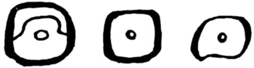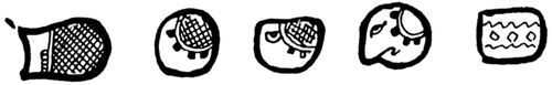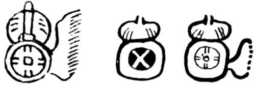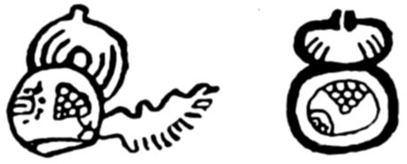 116. Relacion de la Villa de Valladolid (1579), Chap. XIV. I am aware that some variants of this glyph have a striking resemblance to a penis flaccidus cum testiculis; but after close comparison I have rejected this rendering. Thomas sees in the two shells “tortillas.”