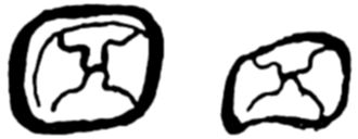 146. “Mac, tapa de vasija.” The opinion of Allen that the sign represents the extended arms, the “great span,” is inappropriate. The measure called mac was much greater (doce brazas, Pio Perez). Another meaning of mac is the sea turtle and its shell (galapago y concha del).