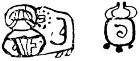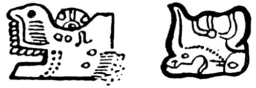137. See Cod. Dres., p. 50. Precisely the same design recurs in the (Mexican) Codex Borgia, published in Kingsborough’s Mexican Antiquities. No. 11 is also a Mexican calendar sign (Gama).