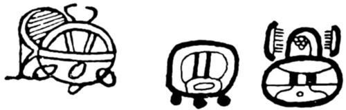 117. Cosas de Yucatan, p. 112 (Ed. Madrid). What looks like the kan sign below it is the strap which fastens it.