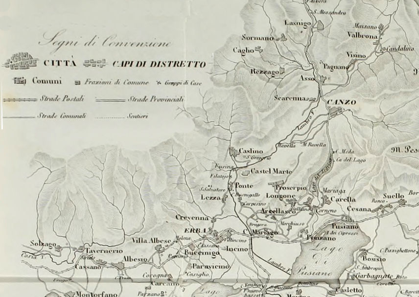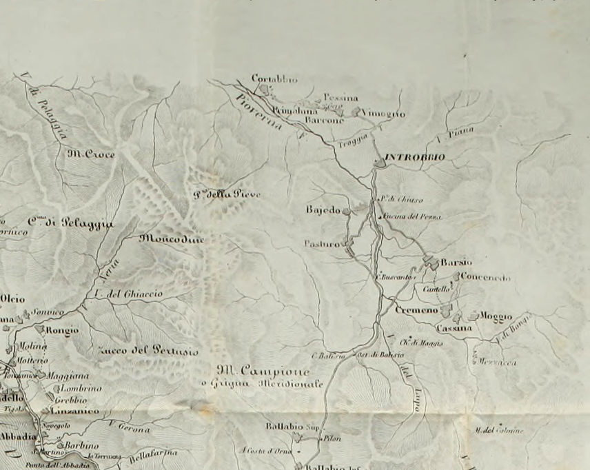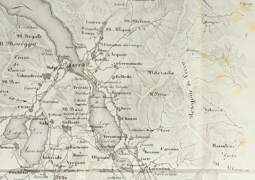 Lo stesso farò coi paesi che circondano la nostra Brianza, riserbandomi per quanto risguarda la Valsassina, ad un'esatta relazione [7] somministratami dal mio pregiato amico signor Ingegnere Giuseppe Arrigoni d'Introbbio, che assai meglio di me può conoscere a parte a parte la sua valle paterna, alla quale ha consacrato già alcuni studj, nojosi se non fossero sempre abbellite di tenere idee le fatiche sostenute per la terra natia.