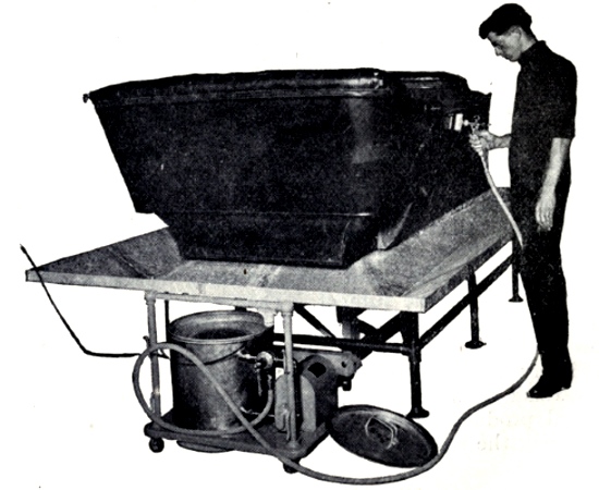 There is abundant evidence to prove that the application of paint, either by means of dipping, spraying or other mechanical means, effects an enormous saving of time over the old method of using brushes, while the coats of paint are more durable and thorough.