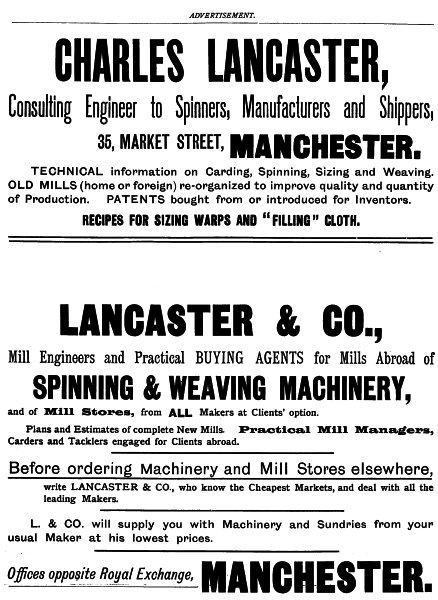 Before ordering Machinery and Mill Stores elsewhere, write LANCASTER & CO., who know the Cheapest Markets, and deal with all the leading Makers.
