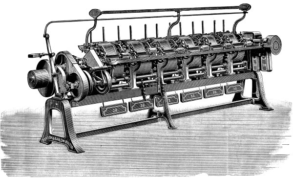 (2) In the early part of the century it was no uncommon thing to find textile machines made in a workshop where engines, machine tools, and other forms of machinery were also constructed. For about the last forty years this practice has ceased, and it is now the universal custom to make textile machines only, in any works where they are produced. This practice has led to a subdivision, not only of labour, but of procedure, which enables good results to be attained. The machine of to-day, although not absolutely, is comparatively, cheaper, and is constructed in a way that even thirty years ago would have been deemed impossible. When the author was an apprentice, about twenty years since, the fitting of cotton machinery was a byeword to the engineer and tool maker. To-day, it would be difficult to find more accurate workmanship or sounder construction in any machine of whatever kind.
