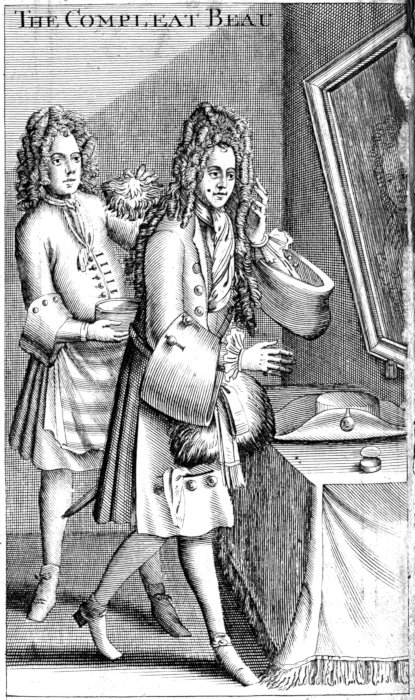 Of the first rank of these is the Beau, who is one that has more Learning in his Heels than his Head, which is better cover’d than fill’d. His Taylor and his Barber are his Cabinet Councel, to whom he is more beholding for what he is, than to his Maker. He is One that has travell’d to see Fashions, and brought over with him the newest cut suit, and the prettiest Fancy’d Ribbands for Sword Knots. His best Acquaintance at Paris was his Dancing Master, whom he calls the Marquiss, and his chief Visits to the Opera’s. He has seen the French King once, and knows the name of his cheif Minister, and is by this suffciently convinc’d that there are no Politicians in any other Part of the World. His improvements are a nice Skill in the Mode, and a high Contempt of his own Country, 69and of Sense. All the knowledge he has of the Country, or Manners of it, is in the keeping of the Valet that follow’d him hither, and all that he retains of the Language is a few modish words to lard his discourse with, and shew his Breeding, and the names of his Garniture. He shou’d be a Philosopher, for he studies nothing but himself, yet ev’ry one knows him better, that thinks him not worth knowing. His looks and gestures are his constant Lesson, and his Glass is the Oracle that resolves all his mighty doubts and scruples. He examines and refreshes his Complexion by it, and is more dejected at a Pimple, than if it were a Cancer. When his Eyes are set to a languishing Air, his Motions all prepar’d according to Art, his Wig and his Coat abundantly Powder’d, his Gloves Essenc’d, and his Handkercher perfum’d and all the rest of his Bravery rightly adjusted, the greatest part of the day, as well the business of it at home, is over; ’tis time to launch, and down he 70comes, scented like a Perfumers Shop, and looks like a Vessel with all her rigging under sail without Ballast. A Chair is brought within the door, for he apprehends every Breath of Air as much, as if it were a Hurricane. His first Vesit is to the Chocolate House, and after a quarter of an Hours Compliment to himself in the great Glass, he faces about and salutes the Company, and puts in practice his Mornings Meditations; When he has made his Cringes round, and play’d over all his Tricks, out comes the fine Snush Box, and his Nose is Regal’d a while: After this he begins to open, and starts some learned Arguments about the newest Fashion, and hence takes occasion to commend the next Man’s Fancy in his Cloths, this ushers in a discourse of the Appearance last Birth Night, or Ball at Court, and so a Critick upon this Lord, or that Ladies Masquing Habit. From hence he adjourns to the Play-house, where he is to be met again in the side Box, from whence he makes 71his Court to all the Ladies in general with his Eyes, and is particular only with the Orange-Wench. After a while he engages some neighbouring Vizor, and together they run over all the Boxes, take to Pieces every Face, examine every Feature, pass their Censure upon every one, and so on to their Dress; here he very Judiciously gives his opinion upon every particular, and determines whose Colours are well chosen, whose Fancy is neatest, and whose Cloths fit with most Air; but in conclusion sees no Body compleat but himself in the whole House. After this he looks down with contempt upon the Pit, and rallies all the slovenly Fellows, and awkard Beau’s (as he calls them) of t’other End of the Town, is mightily offended at their ill scented Snush, and in spight of all his Pulvilio and Essences, is overcome with the stink of their Cordovant Gloves. To close all, Madam, in the Mask must give him an account of the Scandal of the Town, which she does in the History of abundance of Intrigues real or feign’d; at 72all which he laughs aloud and often, not to shew his satisfaction, but his Teeth. She shews him who is kept by such a Lord, Who was lately discarded by such a Knight, for granting favours too indiscreetly to such a Gentleman: who has lately been in the Country for two or three Months upon extraordinary Occasions. To all which he gives great attention, that he may pass for a Man of Intelligence in another Place. His next Stage is Locket’s, where his Vanity, not his Stomach, is to be gratified with something that is little and dear, Quails and Ortalans are the meanest of his Diet, and a Spoonful of Green Pease at Christmass, are worth to him more than the inheritance of the Feild where they grow in Summer. Every thing falls in his Esteem, as it falls in price, and he wou’d not so much as tast the Wine, if the hard name, and the high rate did not give it a relish. After a glass or two, (for a Pint is his stint) he begins to talk of his Intrigues, boasts much of the Favours he has receiv’d, and shews 73counterfeit Tokens, and in Conclusion, slanders some Lady or other of unquestion’d Vertue with a particular fondness for him. His Amours are all profound Secrets, yet he makes a Confidence of ’em to every Man he meets with. He pretends a great reverence for the Ladies, and a mighty tenderness of their Reputations; yet he is like a Flesh Flye, whatever he blows on is tainted. He talks of nothing under Quality, tho’ he never obtain’d a Favour, which his Man might not have for half a Crown. He and his Footman in this Case are like English and Dutch at an Ordinary in Holland, the Fare is the same, but the Price is vastly different. Thus the Show goes forward, till he is beaten for Trespasses he was never guilty of, and shall be damn’d for Sins he never Committed. At last, with his Credit as low as his Fortune he retires sullenly to his Cloister, the King’s-Bench, or Fleet, and passes the rest of his days in Privacy, and Contemplation. Here, Madam, if you 74please wee’l give him one Visit more, and see the last Act of the Farce; and you shall find him (whose Sobriety was before a Vice, as being only the Pimp to his other Pleasures, and who fear’d a lighted P