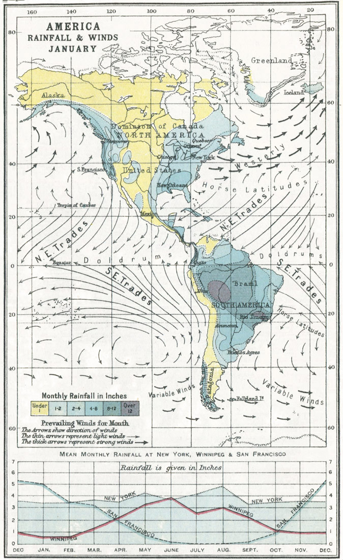 | America—Rainfall and Winds, January | 30 |