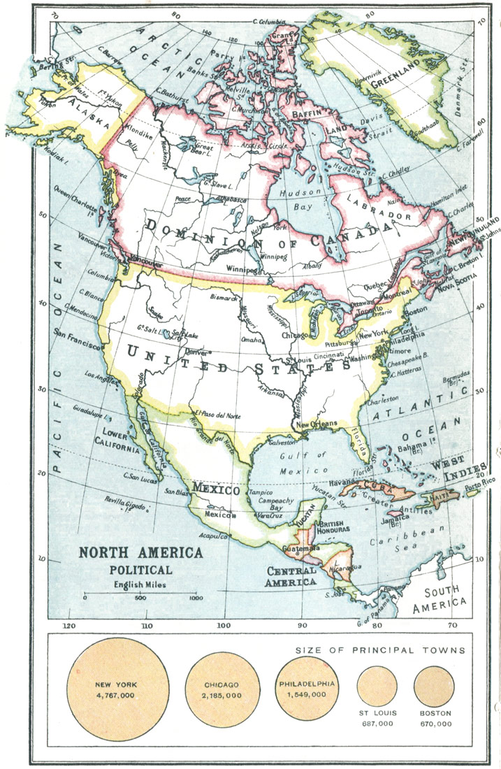 We might have spoken at large of Canada and its huge dominion; of Newfoundland, New Brunswick, New "Scotia," and the chain of the Great Lakes in the North. But an Atlas speaks for itself with the accent of a world-bearer if one treats its pages as they ought to be treated, with a sense of the great perspective of history and of men and nations advancing along it to their fulfilment in the world. The Old World and the New have lately been drawn closer by the mysterious nerves that underrun the Atlantic and the understanding of a true world polity; and it is hoped that this volume will do something to foster that amity between states and nations. [ix]