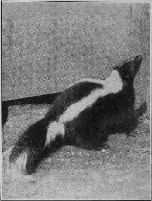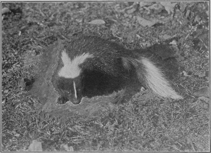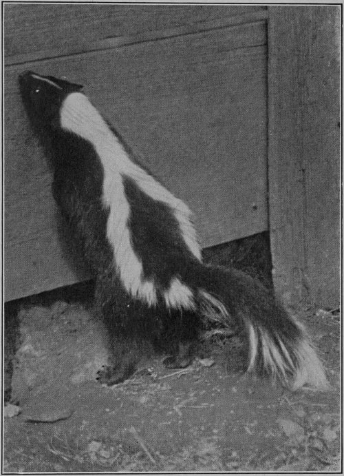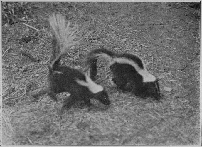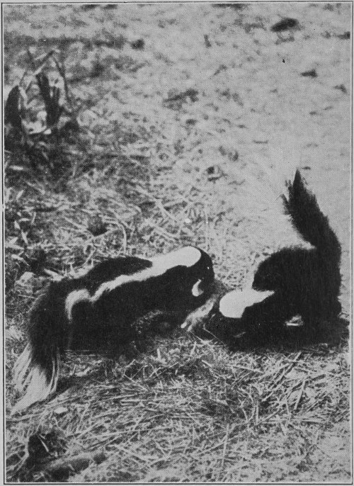 I do not doubt that there are many skunks who have never had occasion to pollute the air in this way. Several have lived for years in drains around my country home, and because my dogs are tied at night, have only twice made their presence known by throwing musk—once when one of their number was run over by an automobile and once when some kind of a fight occurred among the animals feeding together at night around the garbage barrel.