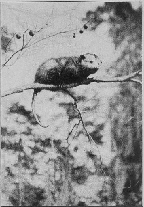 But food was the important thing now, so next she crept around the house and hungrily picked up scraps thrown from the kitchen door, potato peelings for the most part, with one foot of a hen and two fish skeletons as tid bits. An old ’possum was there too, munching away in sour silence and cracking bones with his strong jaws.
