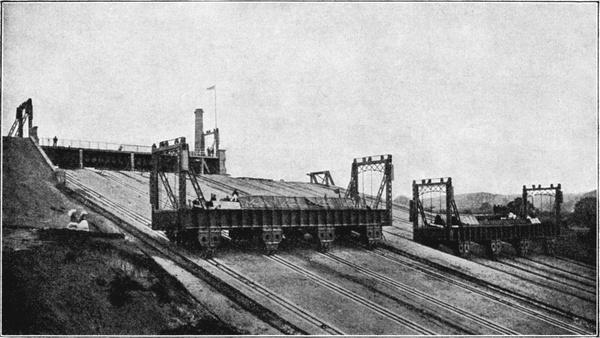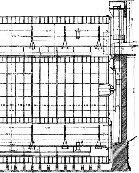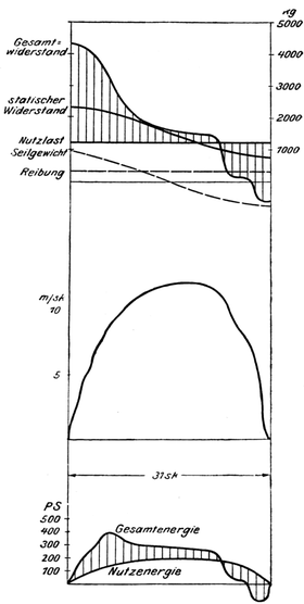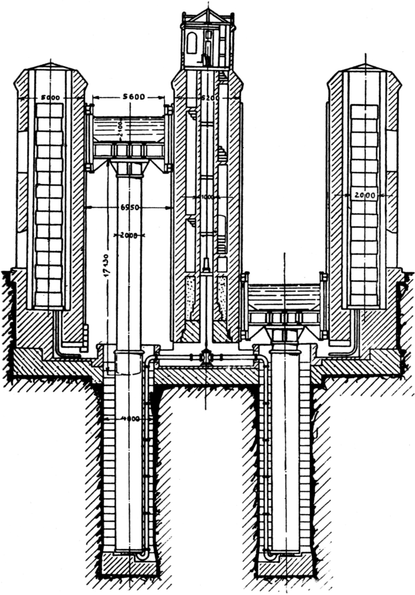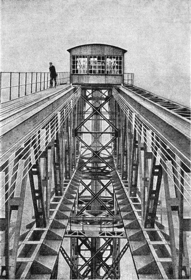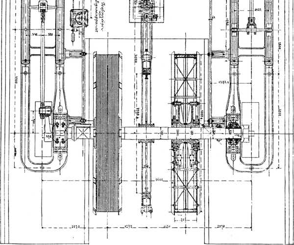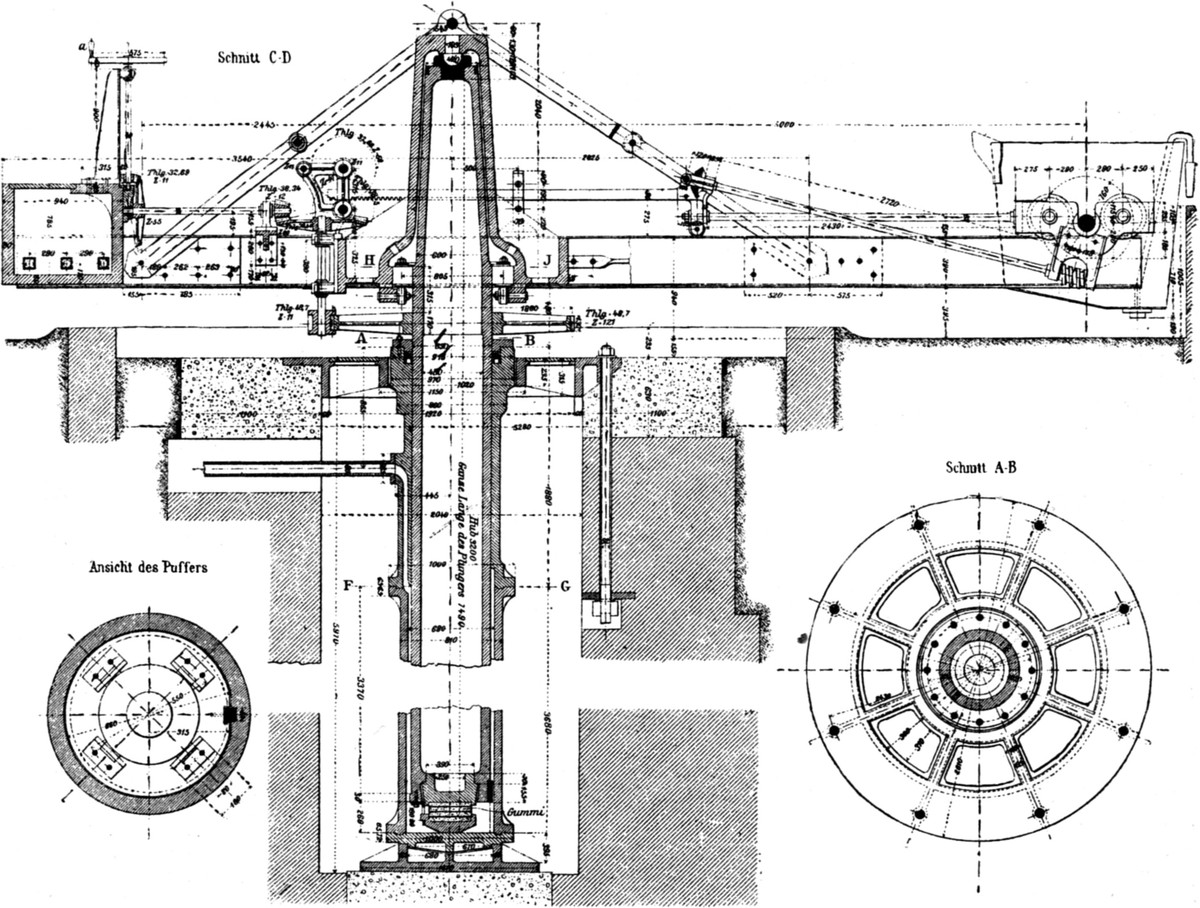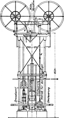 Erst mit dem Jahre 1890 trat ein Umschwung ein. Die elektrische Kraftübertragung, die um das Jahr 1880 bekannt geworden war, wurde gegen 1890 für den Hebemaschinenbetrieb nutzbar gemacht.