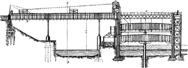 Fig. 13 (entnommen aus Beck S. 291) ist die erste Darstellung einer Seilbahn mit festem Tragseil und mit einem besonderen Zugseil.