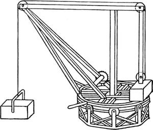 Zur Bewegung schwerer Lasten gibt Leonardo folgende Maschinen an: