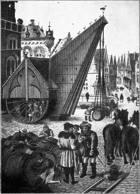 Erst gegen das 15. Jahrhundert zu werden uns wieder Nachrichten über Maschinen zur Bewegung schwerer Lasten übermittelt. Der erste Bericht dieser Art stammt aus der Zeit der Hussitenkriege um das Jahr 1430. Theodor Beck übermittelt uns aus dieser Schrift folgende Skizzen: