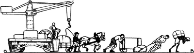 ie Arbeit des Lastträgers ist von jeher als eine besonders harte und drückende empfunden worden. Dies spricht sich aus in bildlichen Ausdrucksformen: »Jemandem eine Last aufbürden« — »Schwer daran tragen« und anderen. Das Drückende liegt nicht etwa in der großen Muskelanstrengung, denn die Arbeit des Schmiedes strengt gewiß nicht minder an und ist gleichwohl seit alten Zeiten als eine vornehme empfunden worden. Die drückende Empfindung wird vielmehr dadurch hervorgerufen, daß einmal der Lastentransport eine nur körperliche Arbeit ohne jeden Aufwand von Denkarbeit ist, und daß er zudem eine unproduktive Arbeit ist. Denn durch den Transport wird keinerlei Veredlung des Stoffes herbeigeführt sondern nur eine Raumveränderung.