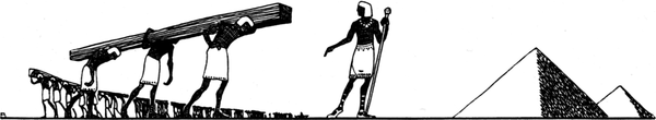 Die technischen Hilfsmittel waren also: Gewichtshebel einfachster Art und in großer Zahl angebracht, Schlittenkufen und Erdschüttungen. Zur Handhabung dieser Mittel waren naturgemäß gewaltige Mengen von Menschen erforderlich, die gefügig einem einzigen Willen gehorchten.
