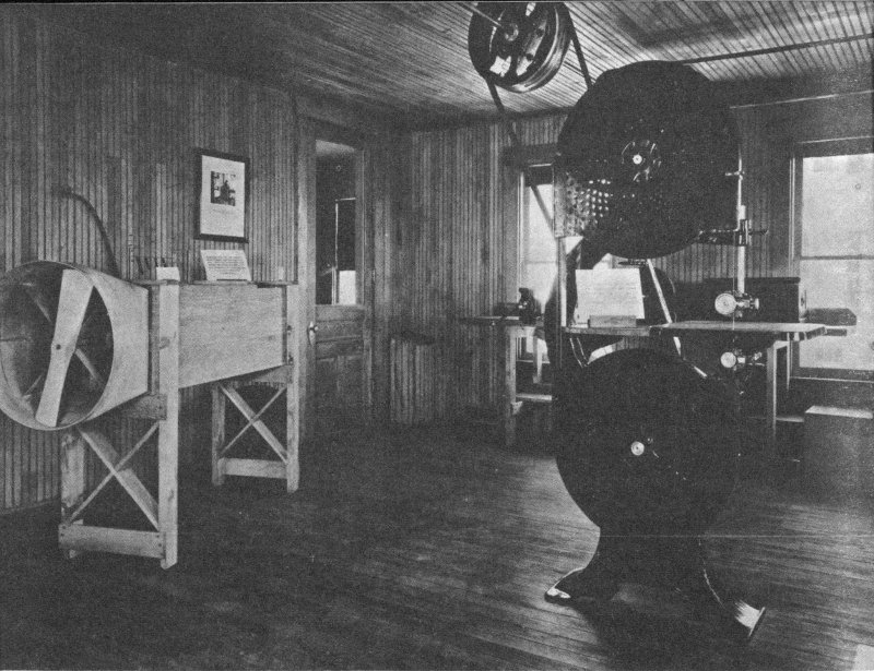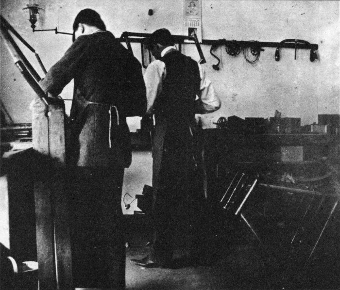 Edwin H. Sines and Orville Wright in backroom of bicycle shop, 1897. Ed Sines was a boyhood friend of Orville Wright.