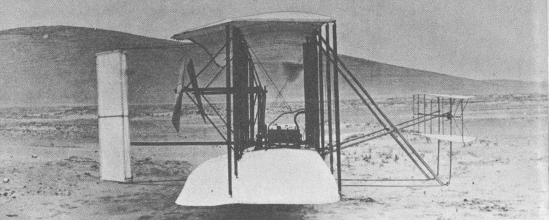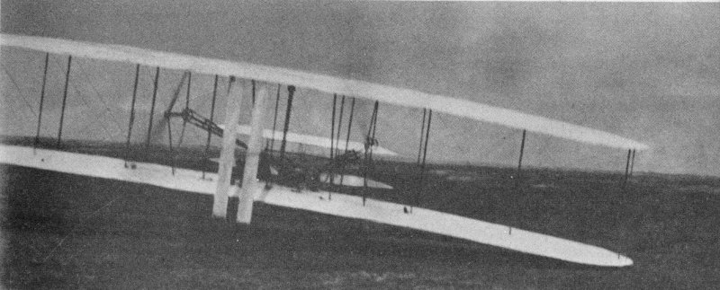Orville found that the new, almost untried, controlling mechanisms operated more powerfully than the previous controls he had used in gliders. He also learned that the front rudder was balanced too near the center. Because of its tendency to turn itself when started, the unfamiliar powered machine’s front rudder turned more than was necessary.
