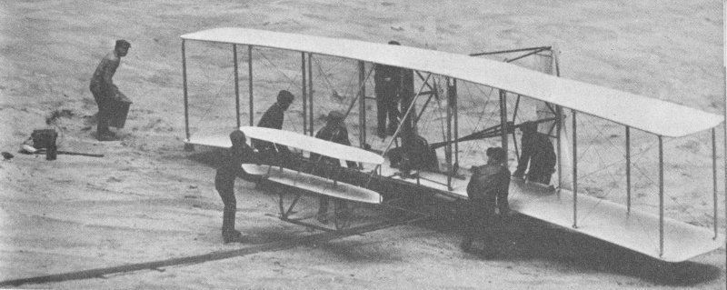 Getting ready for the first flight, Dec. 17, 1903. From a diorama in the Wright Brothers National Memorial Visitor Center.