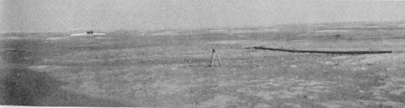 End of fourth and longest flight of Dec. 17, 1903. Distance: 852 feet; time: 59 seconds.