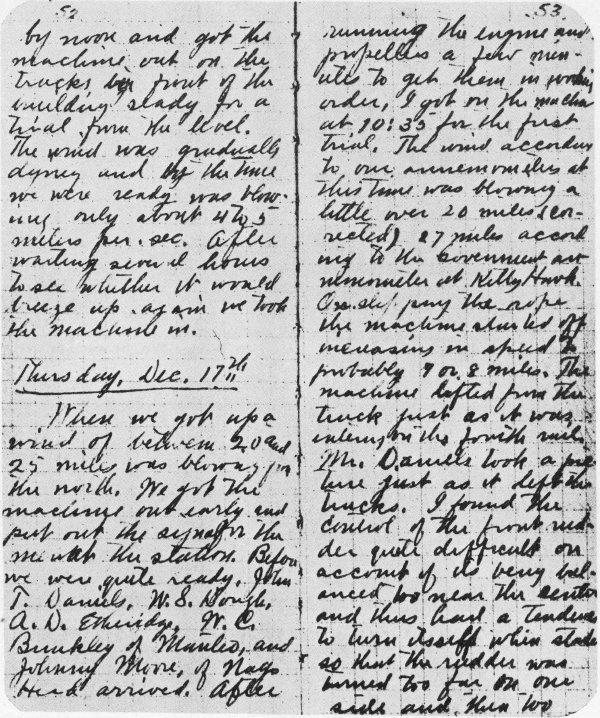 Orville Wright’s diary showing Dec. 17, 1903 entry. This account is the only contemporary written record of these momentous flights.
