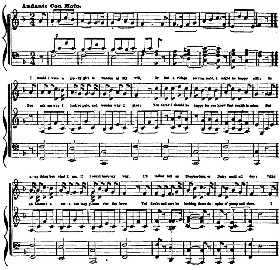 I would I were a gipsy girl to wander at my will,