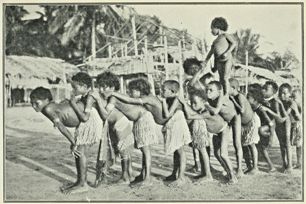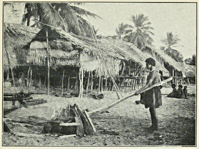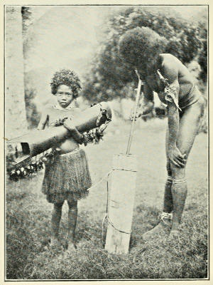 “Do you remember what happened when we were sitting on the platform drinking cocoanuts? You probably saw, as I did, that Tima (one of the teachers) jumped up hurriedly and went on to the platform of the big Dubu in front of us, but you would not understand what he called to me in Rarotongan. It was a warning to look out, as the men were covering our party with their arrows, and advice to clear out while he obstructed their aim by walking about in front of them. Lahari, too, saw what the men were up to, and hurried us away to the second village. Tima and the other teachers were all right, as the score was marked up against the white men, and not against them.”