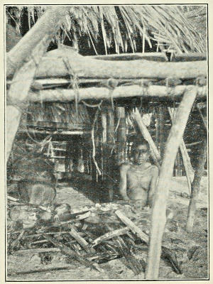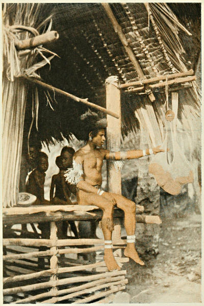 What would you say if you saw the original of the above picture doing the rounds in your town instead of “The Gentleman in Blue?” and yet I do not know any better description of the Kaiva-Kuku than to say he is the village policeman. It is his duty to look after the cocoanuts when they have been gathered and are accumulating in the village for a feast, and like the policeman at home he has his beat. You could not find him further east than Hisiu, nor further west than Maipua.