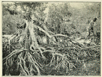 In time the stream became so narrow that rowing was impossible, and the men taking hold of the trees pulled the boats along, while others made use of the punting poles which had been put in the boat when we started.[165] After joining and going down one of the main streams for a time, we turned into another narrow one on the other side.
