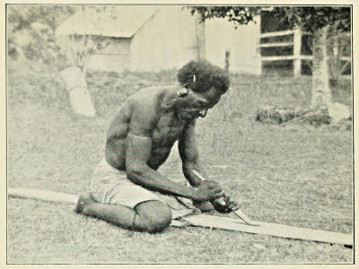 The Papuan made his drum from the solid log before he had seen steel tools, and now that he has seen them he still uses his blow-pipe.