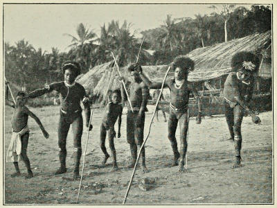 Excitement soon reigned in the village. Women gathered food and valuables into their kiapas (the large netted bag) and got ready to hide in the bush. The children catching the spirit of fright began to cry, and the dogs joined in with their dismal howl. They always do when there is any excitement.