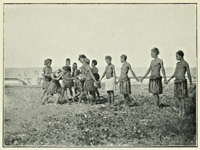 The women and children are all very frightened when the Kaiva-Kuku is seen, and the men at Hisiu took advantage of this, and sent the Kaiva-Kuku out when they saw women and children coming along the beach from fishing. In their hurried flight the fish was all dropped and Mr. Kaiva-Kuku picked it up and took it to the club, where the men enjoyed it; but that was the end of the Kaiva-Kuku at Hisiu, for the Magistrate ordered the masks to be burnt and no more made.