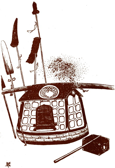 The decorations of her palace, the style of her robes, and those of her attendants, were entirely of the old time. This was in pleasing contrast to the customs of the new Empress, who had adopted the foreign style. In the Imperial Court in its new Tokyo home, there was the heavy perfume of the choicest roses and violets, but in the palace of the old Empress Dowager there was the subtle, faint aroma of sweet umegaku and tambo.