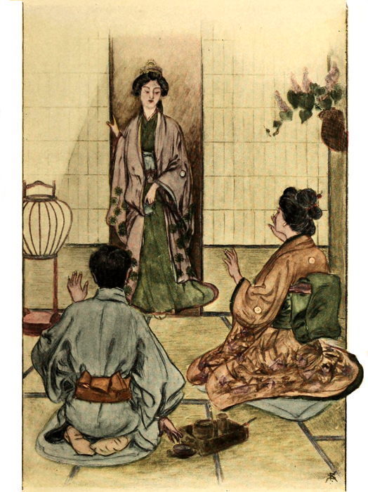“Hark, listen!” said Sado-ko, her eyes gleaming. “They are calling me. They wish to put my wedding gown upon me. I must go. Natsu! Come and dress me for the last time in my maidenhood. Junzo! For but an hour’s space, sayonara!”