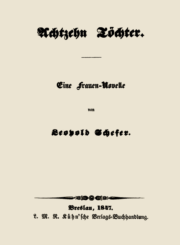 Herr von Stifter, Ihr Gutsnachbar hier am See, der lange in der Levante gereist ist, bemerkte der Pastor, hat gesehen, daß viele Türken, gewiß nur eigene, 30 bis 40 Söhne hatten; Töchter werden da nicht gezählt. In Sicilien sind um sein ankommendes Schiff die Kinder von nur 13 Matrosen herbeigelaufen, ein Schwarm von 105! Aber die Erziehung! die Erziehung! das ist die Sache; und die Verheirathung, die gute Verheirathung! Denn die Töchter sind schon alle so so, oder so wie ihre Mutter Agathe, verheirathbar, welche gewiß dem Fürsten zu Lynar zu seinem wunderhold naiven Gedicht, „die Frau von sechzehn Jahren“,[S. 46] das schöne Vorbild gegeben hat, oder doch gegeben haben könnte; um dem Autor sein Eigenthum nicht anzutasten. Mit 19 Jahren ist sie schon Mutter von 7 Kindern gewesen, laut Kirchenbuche; denn darin stehen einmal Drillinge, zweimal Zwillinge; darauf in fünfzehn Jahren eilf einzelne Töchter. Nur 33 Jahr jung, ist sie über die jüngste Tochter eingegangen. Jetzt ist sie gegen 13 Jahre todt; also ist diese Jüngste schon so alt; und die älteste erst in dem berühmten und beliebten Standjahre 29, in welchem alle noch ältere Mädchen sich rühmen zu sein. Diese Aelteste, Antonie, ist Wittwe; Auguste: Wittwe. Und auffällig, beide kurz hintereinander zu Wittwen geworden. Zwanzig Jahre auseinander wäre es Niemandem aufgefallen. Antoniens Mann ist nicht in die Brautkammer gekommen, weil er am Hochzeittisch an einer Fischgräte, die ihm durch Husten den Blutsturz erregt, krank geworden. Auguste ist beim Austritt aus der Trauung krank geworden, und ihr Mann ist vor ihrer Genesung mit dem Pferde gestürzt und gestorben. Darum bedenkt sich die jetzige Braut, Afanasia, durch die Verheirathung ihren schönen jungen Bräutigam, dem Post[S. 47]secretaire Herrn von Rheingraf geheimnißvoll umzubringen! Zehn andere Töchter haben jetzt Brautbewerber. — — —