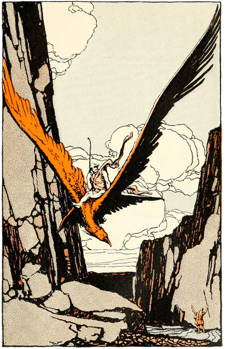 So quickly the magicians hastened back unto the palace, and though Rustem and Rakush had scarcely strength to move, yet went they unto the mountain with all the speed they could, pausing not until they were come into the presence of the Bird of God.