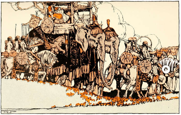 “Verily, Shughad alone of all this great company should be toasted! Yea, and I except not even the King, our host! For is not the Mighty Rustem my brother? And do I not come from a long line of heroes, extending from Husheng the Shah even unto Zal of the white hair?”