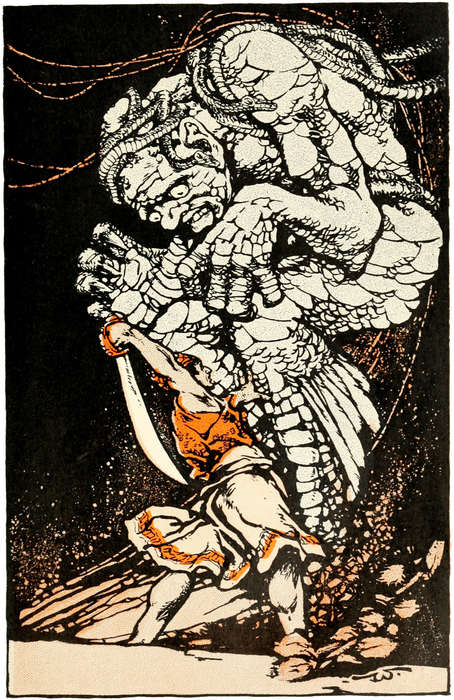 But when once more the mighty Hero opened his horror-stricken eyes upon the world, lo, he beheld Shughad his brother, smiling in triumph at his side. Then knew he unto whom he owed this infamous treachery, and he said: