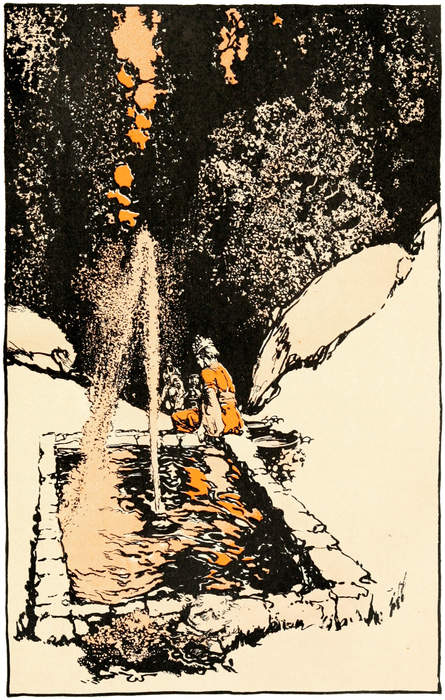 So at once Zal went forth unto a high mountain, taking with him three golden censers filled with fire, and as many mighty magicians, who caused the fires to glow brighter and ever brighter. And lo! at the end of the first watch of the night, Silver-crowned Zal dropped into the brightly glowing fire the glorious golden feather of the Simurgh. Then instantly a mighty stir of wings filled all the air, and the Wondrous Bird of God dropped down beside her child, listening sympathetically unto his plaint. And, the story being told, the Simurgh said: