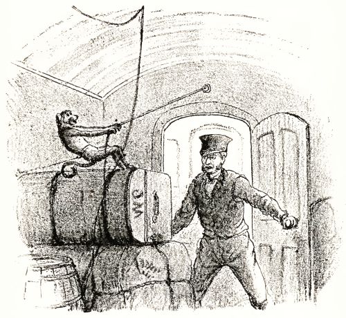 So I stood close up by the wall till he came near me, and then I gave him a splendid bang over the head. It sounded as if you had hit a fellow[Pg 193] with a club, and Mr. Travers dropped to the floor with an awful crash, and never spoke a word.
