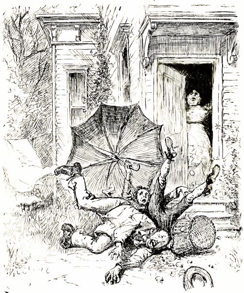 Mr. Martin gnawed away at the earth, and used swear-words to himself, and was perfectly raging. After a while he got the peg, and then he got up with his face about the color of a flower-pot, and put on his hat and went out of the front gate rubbing his face with his handkerchief, and never so much as saying good-night. He didn't come near the house again for two weeks.